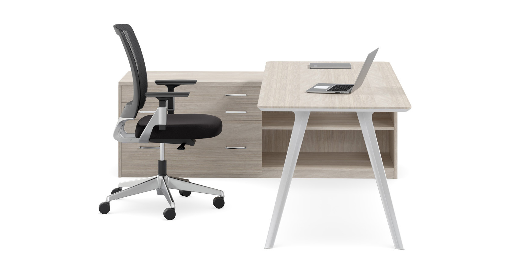 This highly versatile and practical desk and storage system is compatible with a multitude of leg profiles including the Velo, Dart, Keywork, Benchwork, Oslo and Elki making for the ideal open planned workspace or sophisticated executive office.