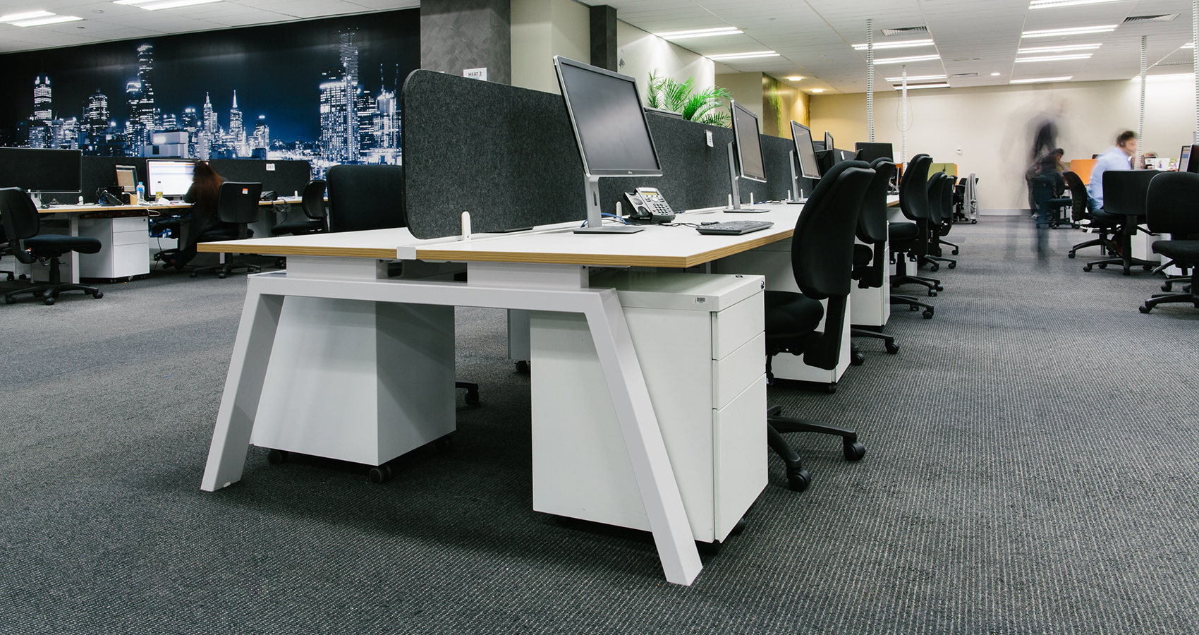 Modern and functional, the open plan offices feature our latest Keywork workstations, Trak Panels, Globe Mobile Pedestal and Umbilical Cord, for a visually clean finish.