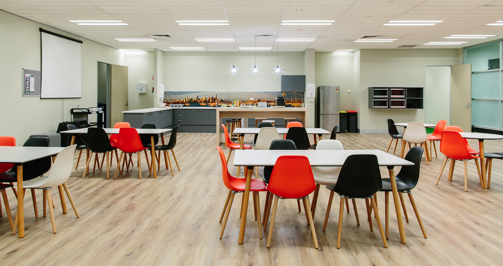 Opting for bright colours to reflect their brand image, iSelect designed an exciting lunch room perfectly pairing Inc chairs in a range of colours with Enzo café tables. The addition of the Jam counter table and Pac stools make for a great casual meeting place.