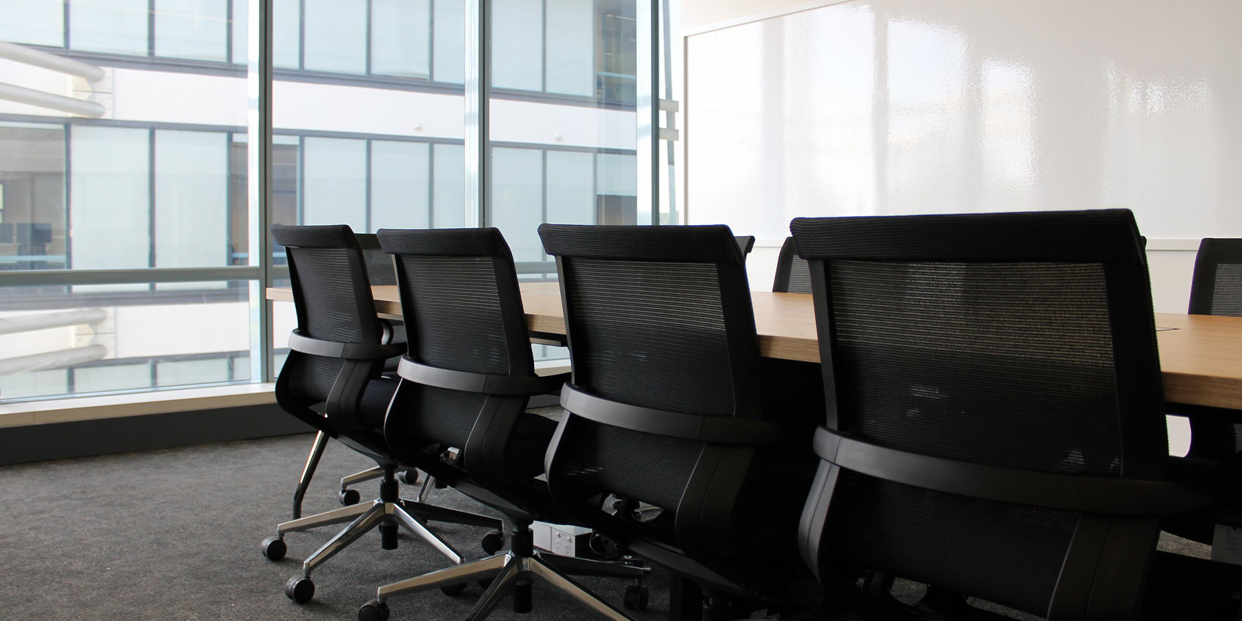 Extending the visual focus beyond the entrance, meeting rooms can be seen through the tall glass windows. Using Velo tables and Universal storage in a light timber finish with black legs, surrounded by our Zed Chairs, a formal yet soft atmosphere was crafted. This aesthetic is continued in the boardroom and other meeting rooms, complimented by the same furniture setting.