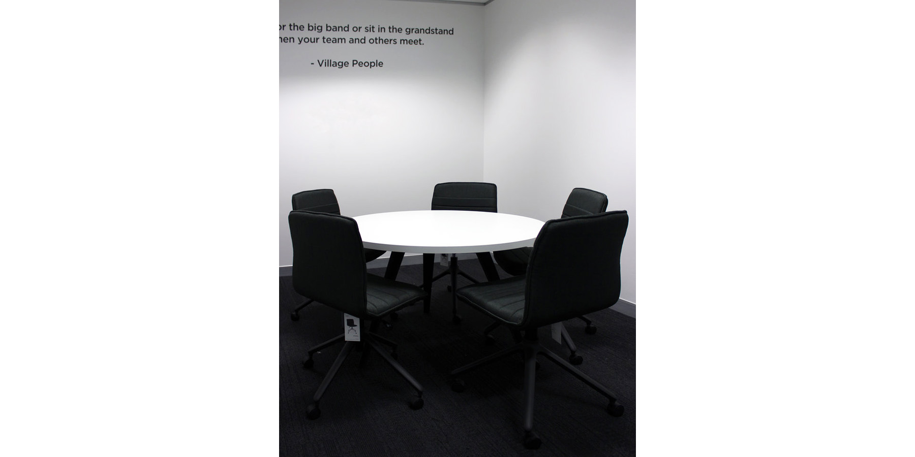 Ovato’s boardroom is a more formal space but carries the theme from the reception and the office surrounds. Featuring our Velo boardroom table in a soft wood finish. Paired with Sax leather chairs in black, a stylish composition of light and dark is established.