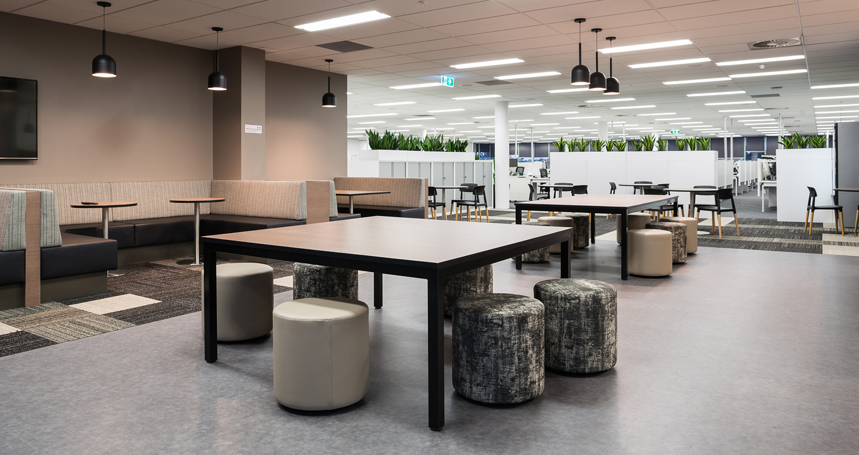 Warm and inviting breakout areas have also been designed mixing woodgrain and earth tone colours featuring our Pac and Zorro stools, Uno tables and counter tables, Cosmopolitan round table, Mim chairs, Bop ottomans and the oh so cosy Hush High Back lounge.